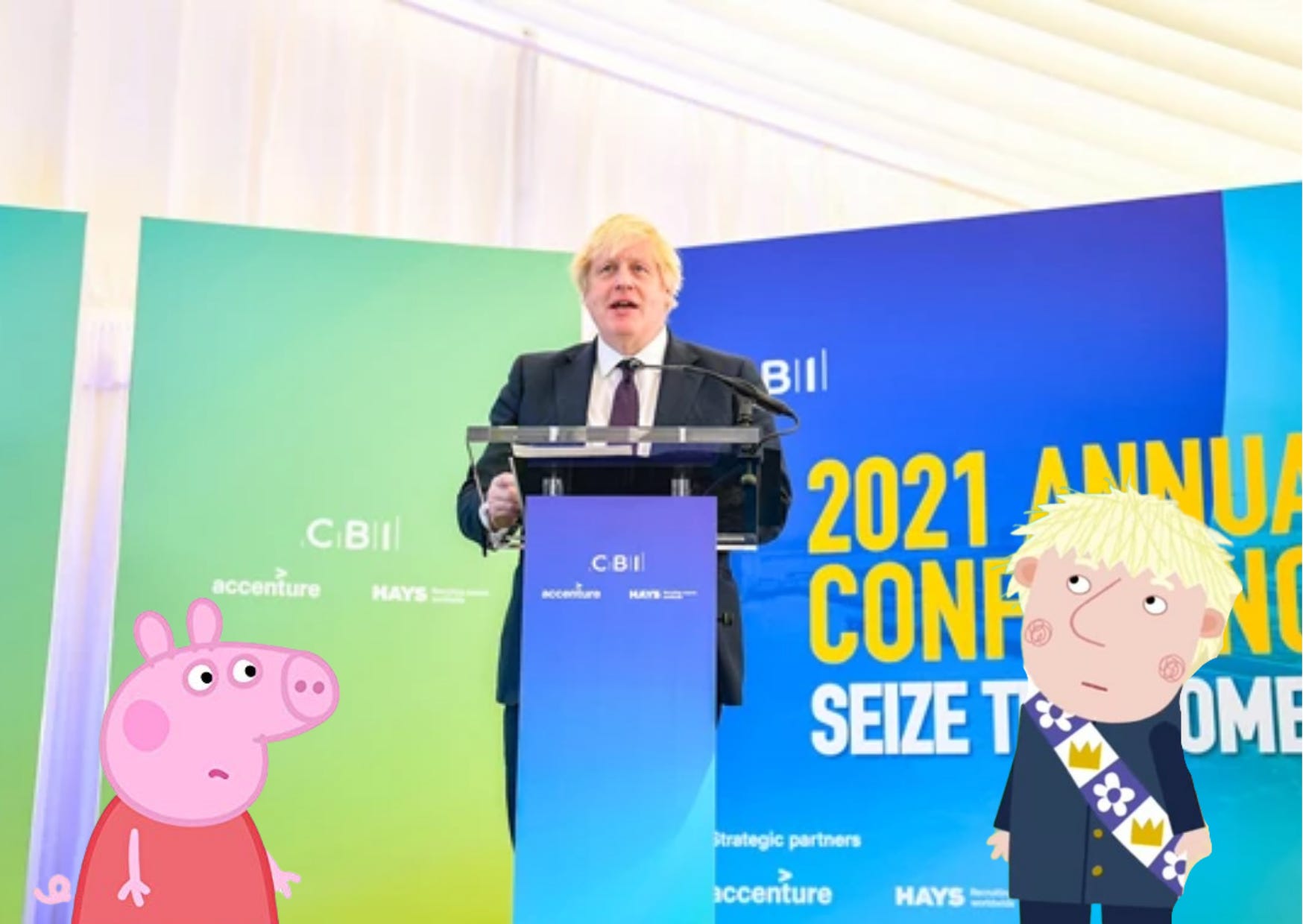 And if Johnson wanted to achieve anything at the CBI, it was to ensure that Keir Starmer’s speech would be nothing more than a footnote. It’s less a dead cat strategy and more a jingling keys manouevre; a creature of the press, Johnson is well aware that hacks are easily distracted and performs his speeches as clownish tumbling acts with pop culture references, classical allusions, and bizarre turns of phrases because he knows it will ensure he’s the headliner and Starmer is the opening band who obsessed more over tuning up than having memorable songs.