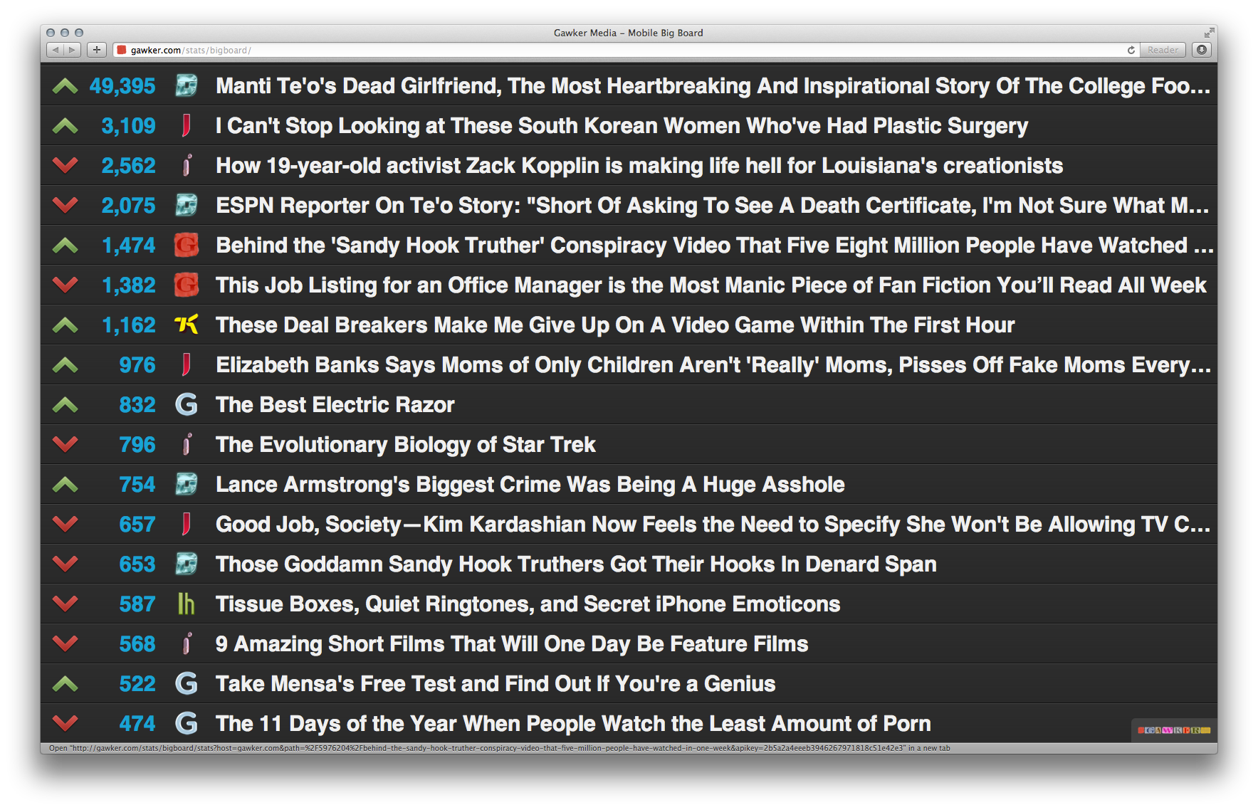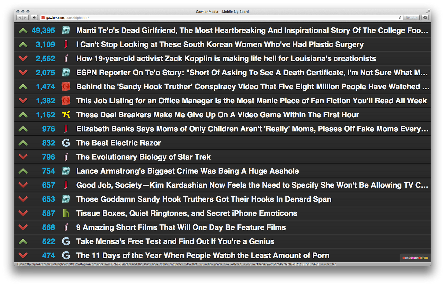 The Gawker big board from the bad/good old days.