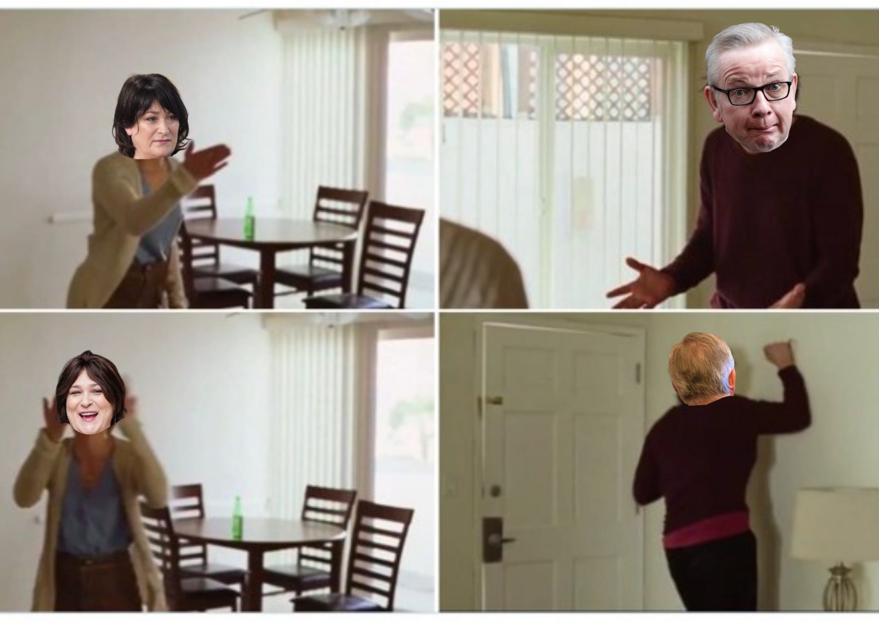 It’s quite a fiendish bit of psychological warfare — reminding Michael that he’s not half the man his ham-faced former boss is and Dave made Sam’s dream of choosing the curtains in Downing Street a reality.